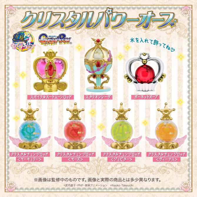 W automatach gashapon pojawią się kolejne śnieżne kule, tym razem poświęcone głównie serii Super S. W zestawie do uzbierania będą Spiral Heart Moon Rod, Stallion Reve, Garnet Orb oraz Crystal Change Rod, czyli pałeczki do przemiany inner senshi z serii