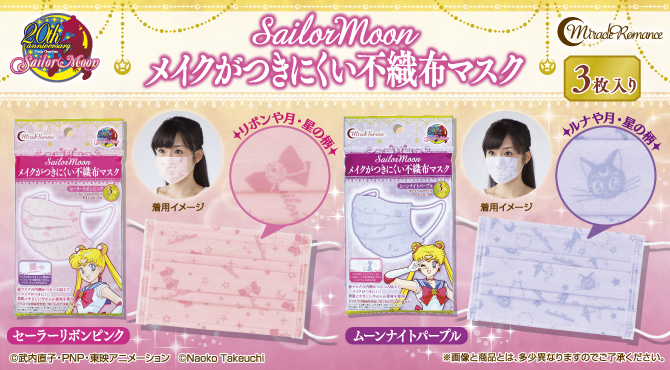 Takie maski nosi się w Japonii, żeby nie zarażać innych ludzi, kiedy podczas choroby wychodzimy na ulicę. Teraz takie maseczki nie muszą być nudne i białe, można założyć sobie kolorowe ze wzorami z Sailor Moon. Do wyboru są 2 wzory, jedna ma kolor różowy