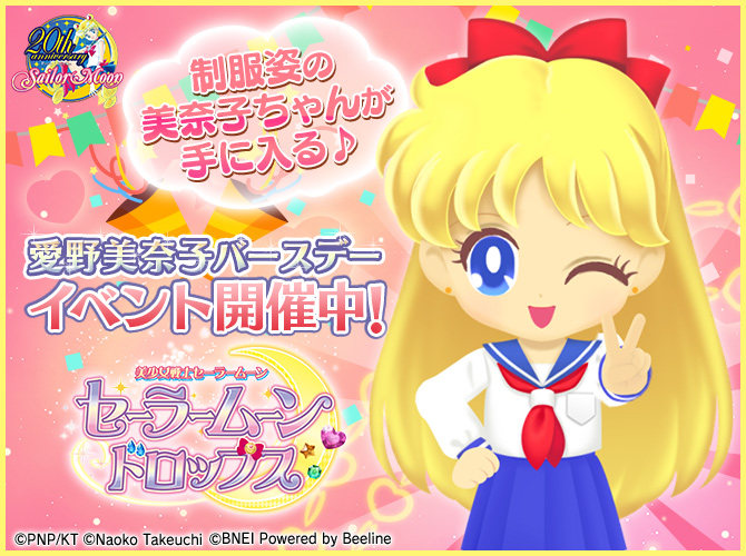 Z grą Sailor Moon Drops będziemy świętować urodziny Minako. Przez określony czas będą dostępne dodatkowe poziomy. Po ukończeniu trzech dodatkowych poziomów pokaże nam się Minako w mundurku szkolnym. Promocja będzie trwać od 20 do 27 października.