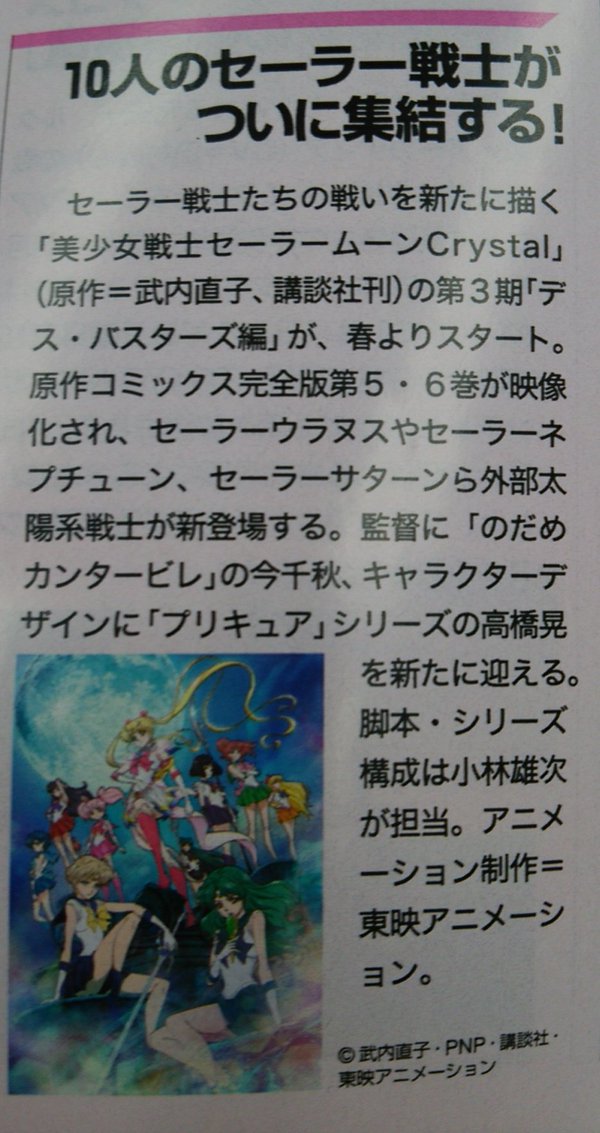 Poza tym na Anime Japan 2016 26 marca między 15:20, a 16:00 ma się pojawić panel poświęcony Sailor Moon Crystal. Informacje na temat programu będą stopniowo przekazywane w późniejszym czasie. Podczas panelu ma być również ujawniona informacja, czym będzie
