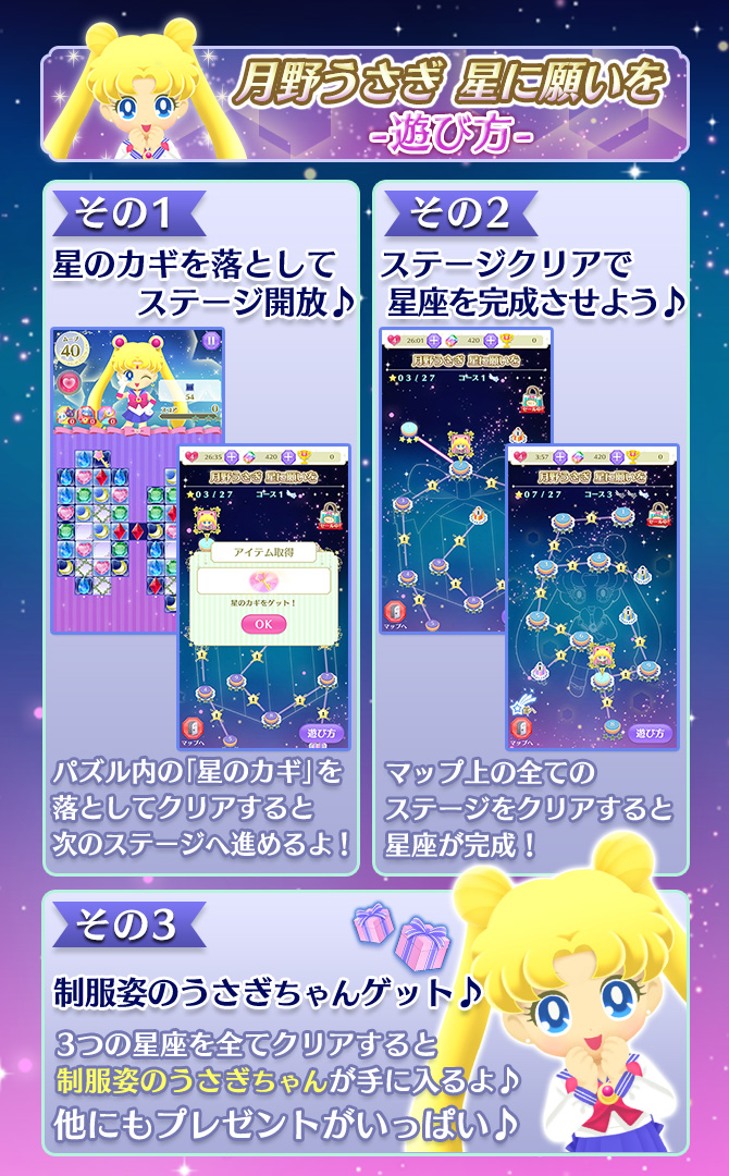 W dniach 15-25 stycznia odbywa się event w grze pod nazwą „Życzenie Usagi do spadającej gwiazdy”. Jak zwykle dostępne są promocyjne poziomy do przejścia i dodatkowe nagrody do zdobycia.