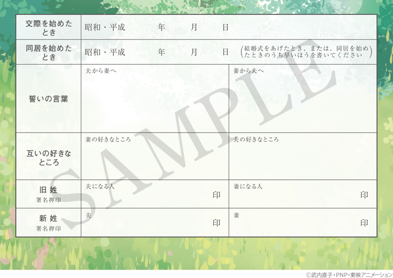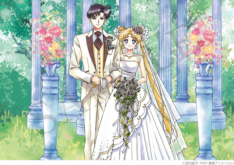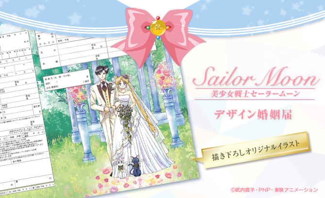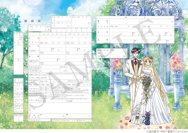 Dzisiaj w ofercie pojawił się kolejny formularz ślubny, tym razem na grafice występują Usagi i Mamoru jako młoda para. Są również Luna i Artemis ozdobieni kwiatami.