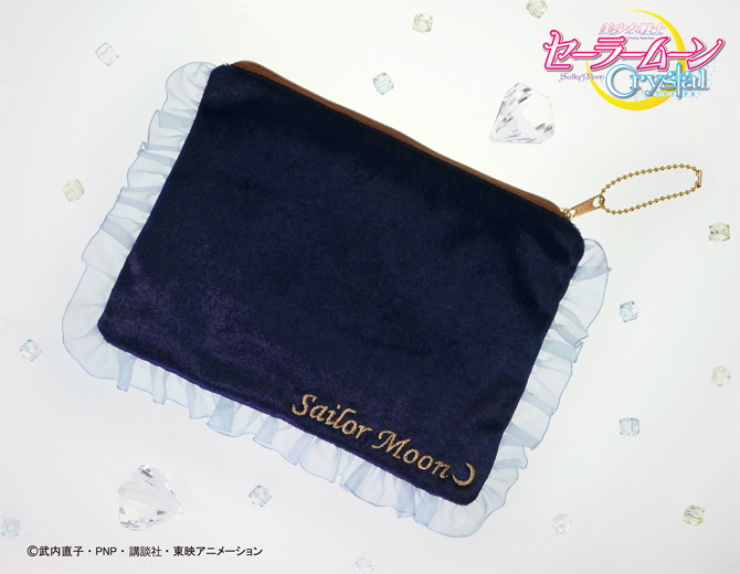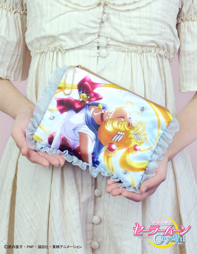 Jest to kolejna kosmetyczka, tym razem bardziej elegancka i ozdobna. Po jednej stronie jest nadruk z Sailor Moon Crystal, a po drugiej wyszyty napis Sailor Moon, całość obszyta jest falbanką. Dla dodatkowego efektu broszka i kilka innych miejsc ozdobionych