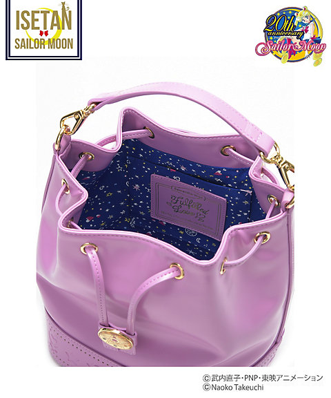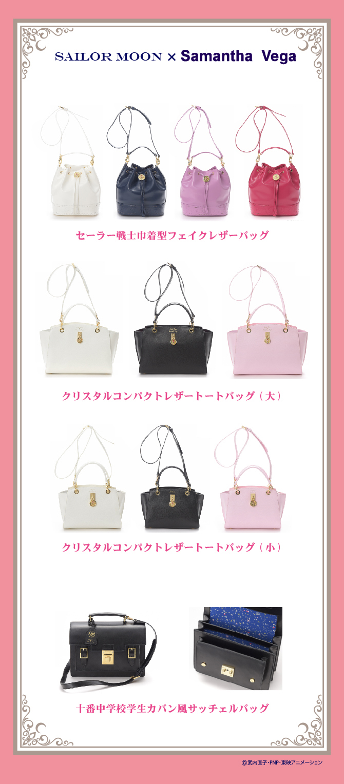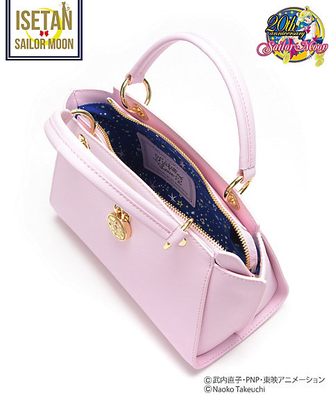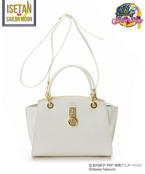 dostępne w czterech kolorach: białym, granatowym, różowym i malinowym. Torby są ze sztucznej skóry, a ściągany pasek ma ozdobę w kształcie broszki Crystal Star. Cena za sztukę to 24840 jenów (ok. 861 zł). Torby typu kuferek dostępne