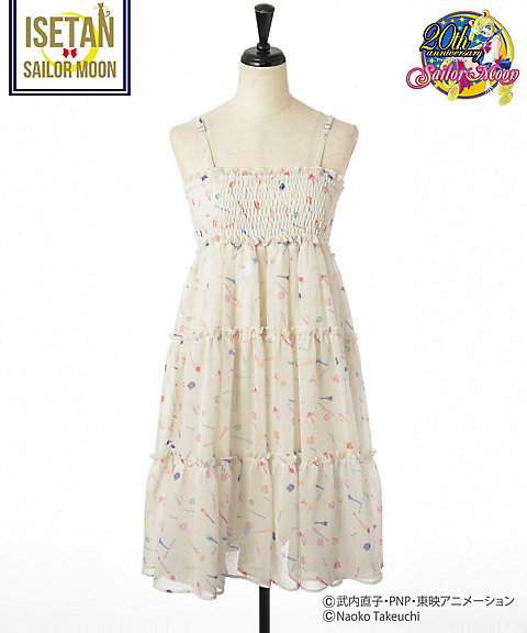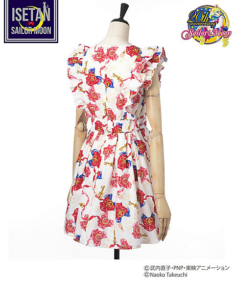 ozdobione są haftowanymi naszywkami, a z drugiej gładkie. Cena za sztukę to 41040 jenów (ok. 1400 zł). Sukienki zadrukowane są w kokardy z broszkami Moon i Chibi Moon, Srebrne Kryształy i Klucze Czasoprzestrzeni.