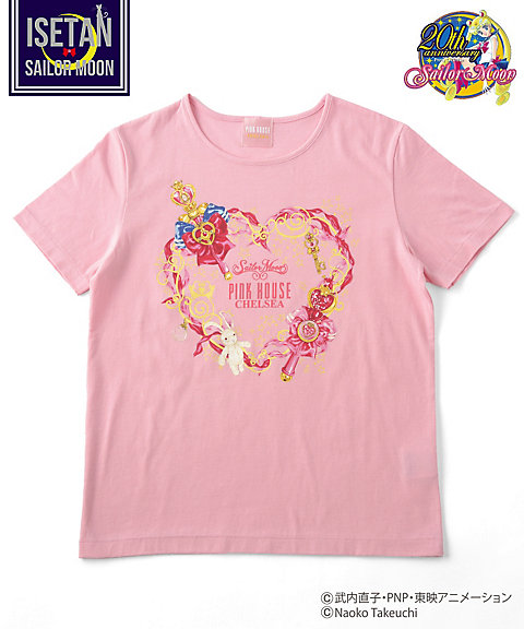 Kolejne artykuły w tej samej współpracy to podkoszulki w czterech kolorach do wyboru; białym, różowym, niebieskim i czarnym. Na środku mają nadruk z kokardami i magicznymi przedmiotami Moon i Chibi Moon ułożonymi w kształt serca. Cena za sztukę to 8208
