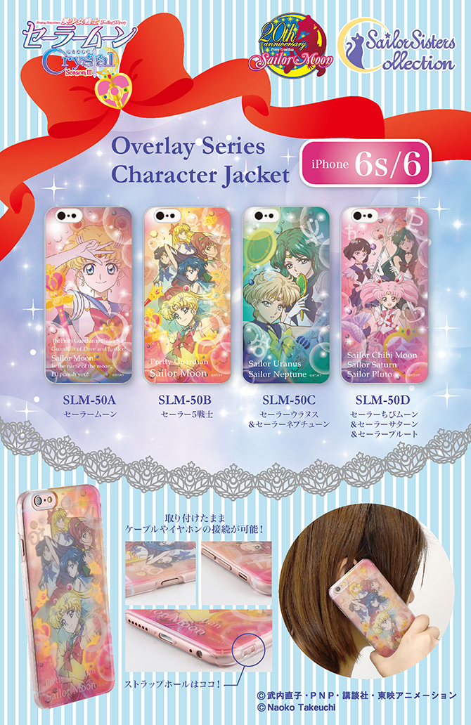 Są to pierwsze etui na telefon z grafiką z III sezonu Crystal. Do wyboru są 4 wzory: Sailor Moon, inner senshi, Uranus i Neptune oraz Pluto, Saturn i Chibi Moon. Cena za sztukę to 2160 jenów (ok. 73 zł). Przedsprzedaż rozpoczęła się 11 marca, a wysyłka