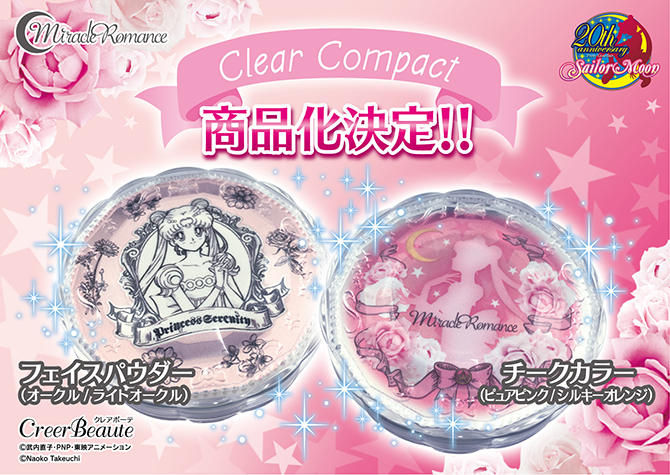 Dzisiaj zapowiedziane zostały kolejne kosmetyki. Będą to puder i róż w przezroczystych opakowaniach, na wieczkach są wzory z Księżniczką Serenity. Oba kosmetyki pojawią się w sklepach w listopadzie. Cena pudru to 2808 jenów (ok. 107 zł), a różu 2592 jeny