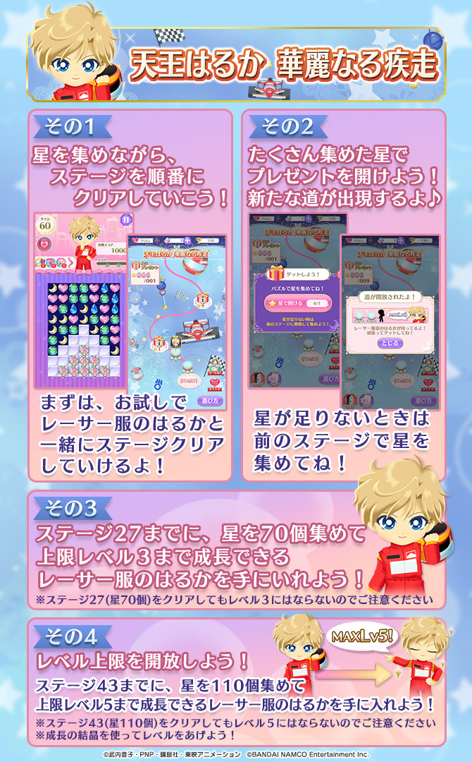 W dniach 9-18 sierpnia pojawią się poziomy powiązane z Haruką. Do uzbierania będą gwiazdki, jeśli uda ich uzbierać 70 do poziomu 27, będzie można podnieść swój poziom w grze, a także otrzymać strój rajdowy Haruki.