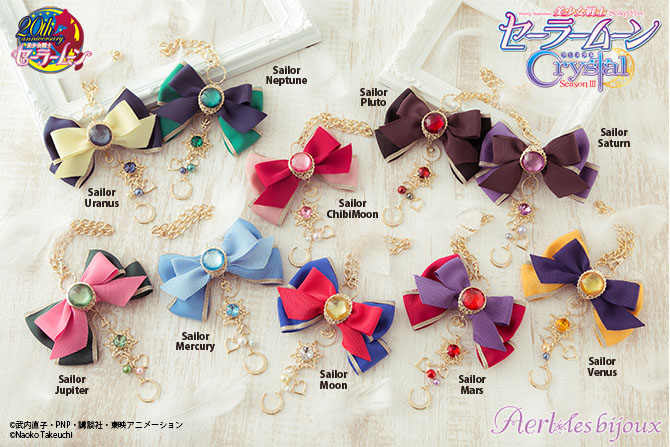 Od firmy Aerl*les bijoux dostaniemy klipsy. Do wyboru jest 10 sztuk, każdy klips jest zbudowany z półksiężyca oraz zawieszonej kokardki i symbolu planety. Przedsprzedaż rozpoczyna się dzisiaj, a cena za sztukę to 5184 jeny (ok. 195 zł). Wysyłka nastąpi