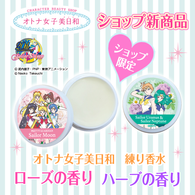 W niedawno otwartym nowym sklepie pojawią się kolejne produkty Sailor Moon, będą to perfumy w formie pasty w okrągłych opakowaniach. Dostępne są dwa wzory, z inner senshi i z Uranus i Neptune. Perfumy inner senshi mają nuty zapachowe brzoskwini, róży,