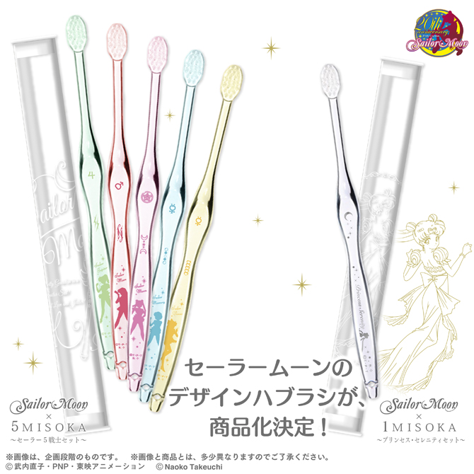 W tej współpracy pojawią się szczoteczki do zębów. Do wyboru będzie zestaw pięciu szczoteczek w kolorach inner senshi oraz szczoteczka Księżniczki Serenity sprzedawana pojedynczo. W każdym przypadku w komplecie będzie etui na pojedynczą szczoteczkę. Zestaw