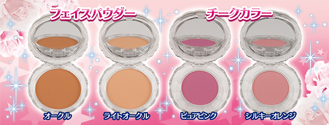 - pudry i róże Miracle Romance w przezroczystych opakowaniach, pudry są w cenie 2600 jenów (ok. 98 zł), a róże w cenie 2400 jenów (ok. 90 zł). - błyszczyki do ust w kolorach niebieskim, różowym i czarnym, cena za sztukę to