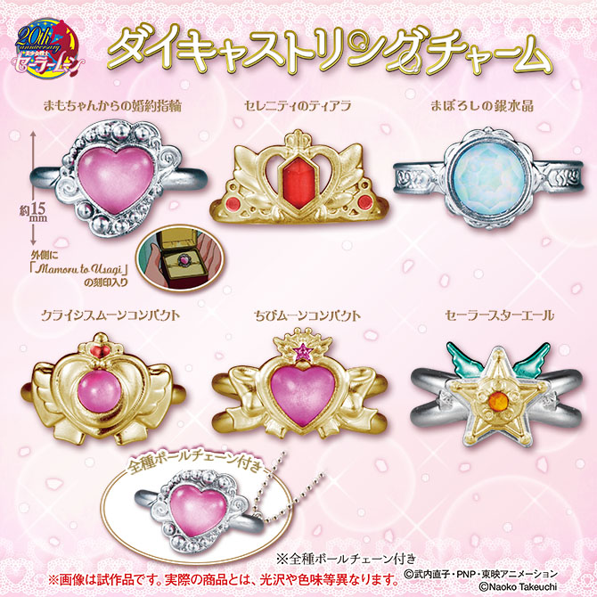 W automatach gashapon pojawi się zestaw zawieszek-pierścionków. Do uzbierania są: pierścionek zaręczynowy Usagi, pierścionek z koroną Nowej Królowej Serenity, pierścionek ze Srebrnym Kryształem Iluzji, pierścionki z broszkami Crisis Moon Compact i Chibi