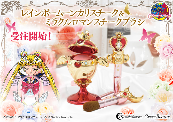 Pojawią się kolejne kosmetyki z serii Miracle Romance, będą to róż w opakowaniu Rainbow Moon Chalice oraz pędzle do różu w formie Moon Stick i Spiral Heart Moon Rod. Wymiary Rainbow Moon Chalice to 125 x 104 x 65 mm, a cena to 4968 jenów (ok. 185 zł).