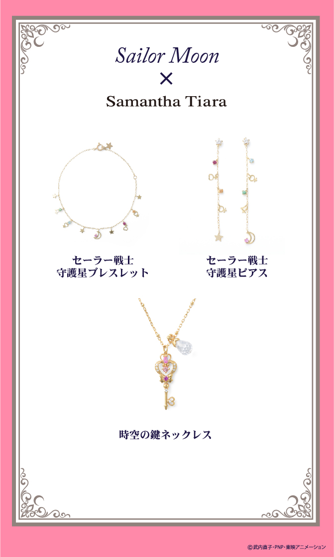 Samantha Tiara: - naszyjnik ze znakami planet inner senshi - długość naszyjnika to 15-18 cm, wykonany z żółtego złota (zawierającego 42% złota), w zestawie ozdobne pudełko, 30 240 jenów (ok. 1092 zł). - do kompletu można dokupić