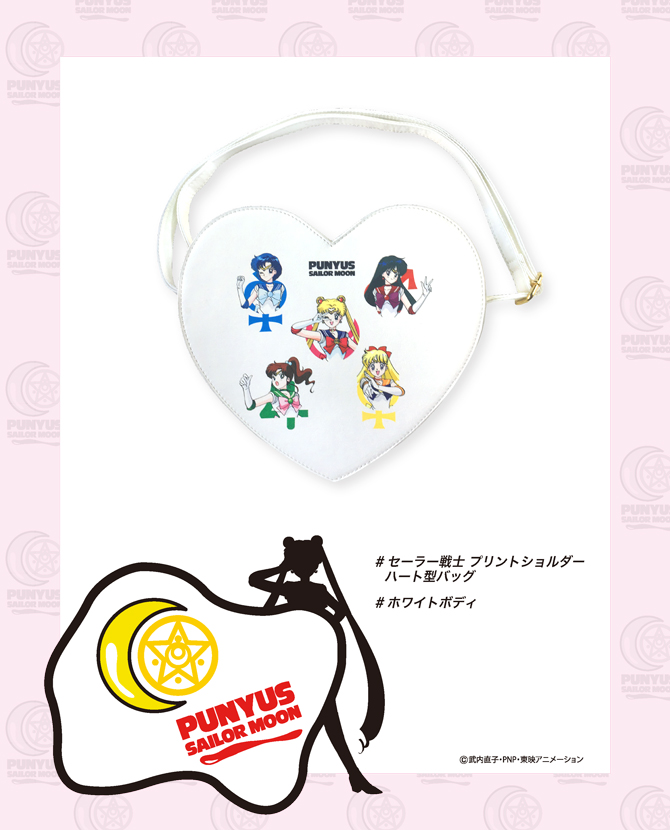 - biała torebka na ramię w kształcie serca z nadrukiem inner senshi - cena to 4990 jenów (ok. 181 zł).