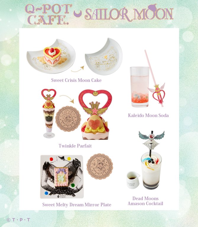 Dzisiaj ogłoszono kolejne nowe akcesoria od Q-pot, a także menu Q-pot cafe. Sprzedaż i otwarcie kawiarni rozpocznie się 30 czerwca, czyli w urodziny Usagi i Chibiusy. Brelok i naszyjnik Sweet Crisis Moon Macaron, naszyjnik Stallion Reve oraz naszyjnik