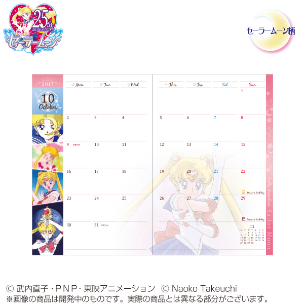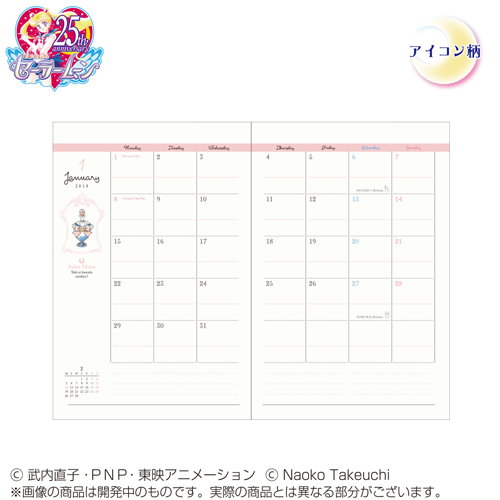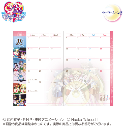Zapowiedziano terminarze na przyszły rok. Do wyboru są dwa wzory: Sailor Moon i Icon. Każdy ma format B6, 96 stron i winylową okładkę. Obejmują okres od października 2017 do grudnia 2018. Przedsprzedaż rozpoczyna się dzisiaj, a wysyłka nastąpi w lipcu,