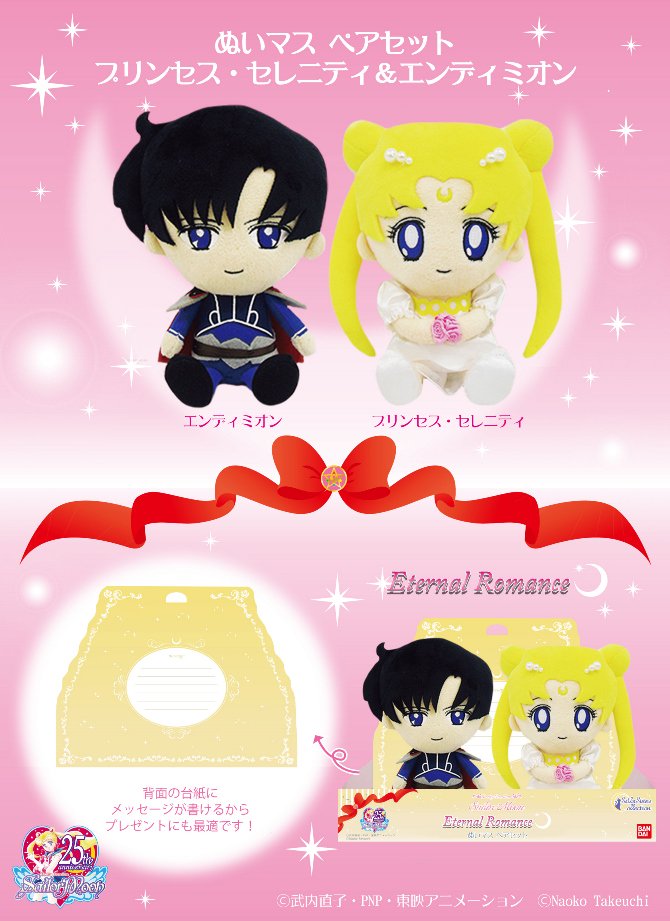 We wrześniu pojawi się w sprzedaży zestaw maskotek zawierający Księżniczkę Serenity i Księcia Endymiona. Maskotki mają wysokość 15 cm. Cena za zestaw to 4298 jenów (ok. 142 zł).
