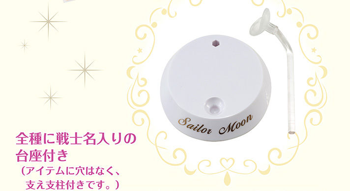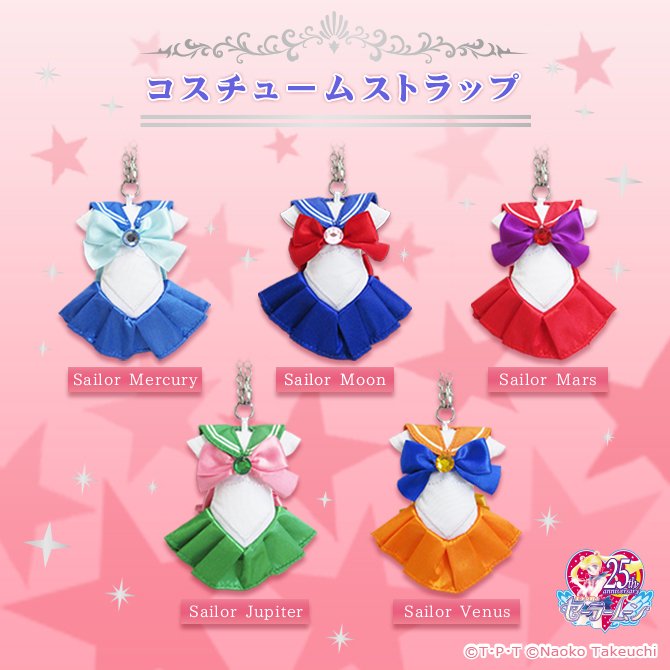 W sprzedaży pojawią się zawieszki w formie strojów inner senshi. Wykonane z błyszczącego materiału i ozdobione cyrkonią w miejscu broszki. Cena za sztukę to 1490 jenów (ok. 49 zł). W sprzedaży pojawią się we wrześniu.