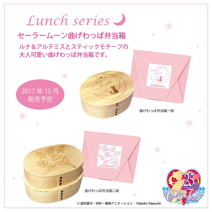Oprócz plastikowych akcesoriów pojawią się również pudełka na drugie śniadania z giętych deseczek. Do wyboru jest pudełko pojedyncze z motywem Luny i Artemisa na wieczku w cenie 4860 jenów (ok. 161 zł) oraz zestaw dwóch pudełek z motywem magicznych przedmiotów