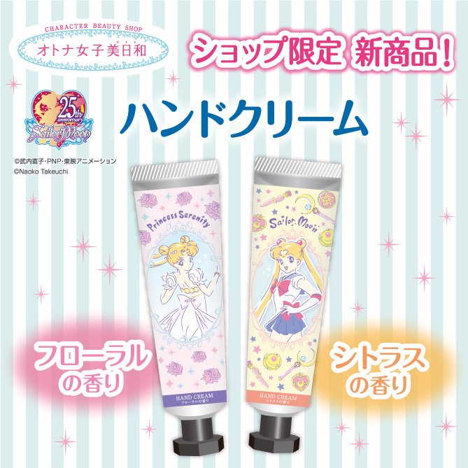 10 sierpnia pojawią się w sprzedaży nawilżające kremy do rąk. Do wyboru wersja Sailor Moon o zapachu cytrusowym lub Księżniczka Serenity o zapachu kwiatowym. Kremy mają w składzie oliwę z oliwek, masło Shea, wosk pszczeli, kolagen i kwas hialuronowy,