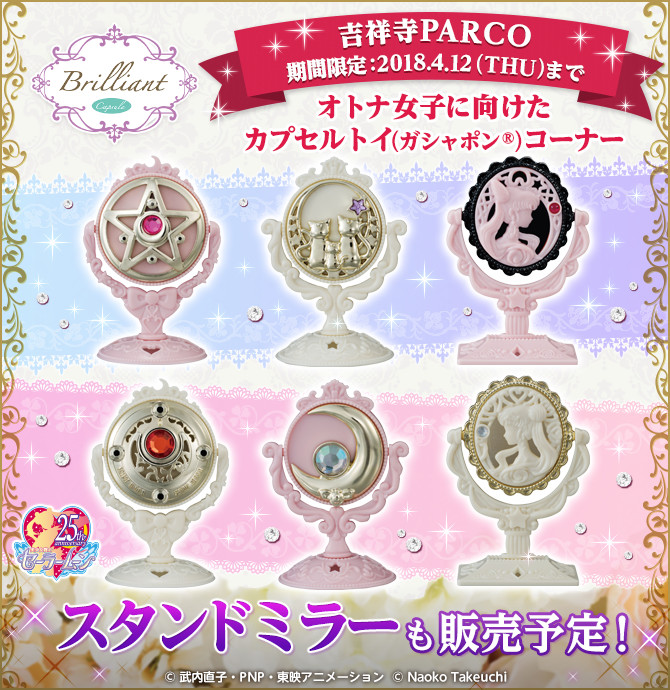 Sailor Moon z lusterkiem z broszką Crystal Star lub czarna wersja Luna & Artemis & Diana z lusterkiem z głowami kotów; 51 840 jenów za sztukę (ok. 1623 zł).