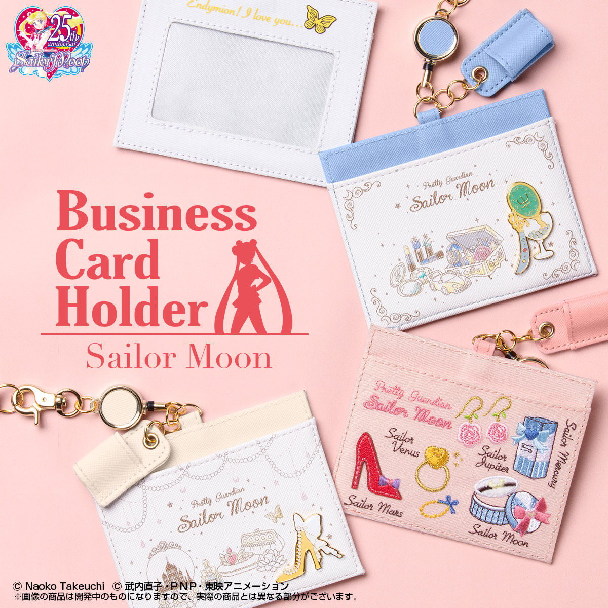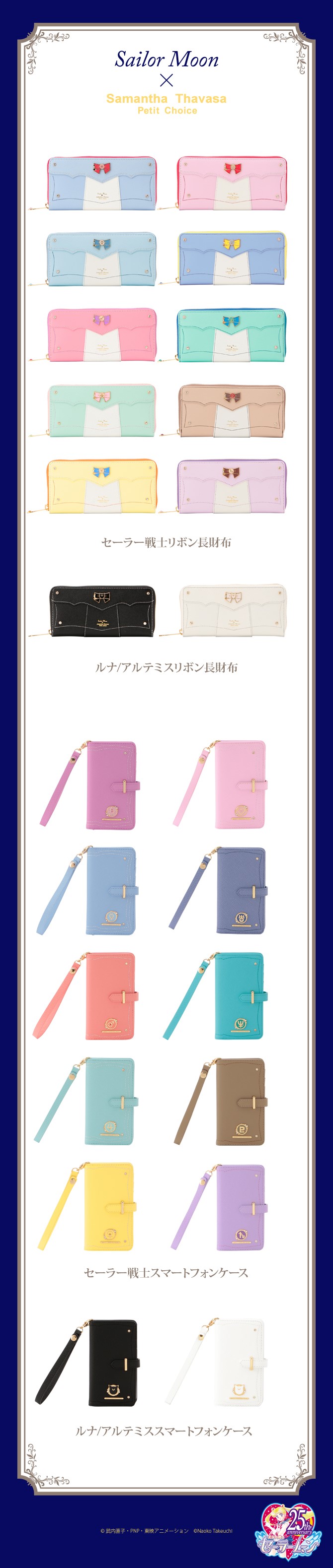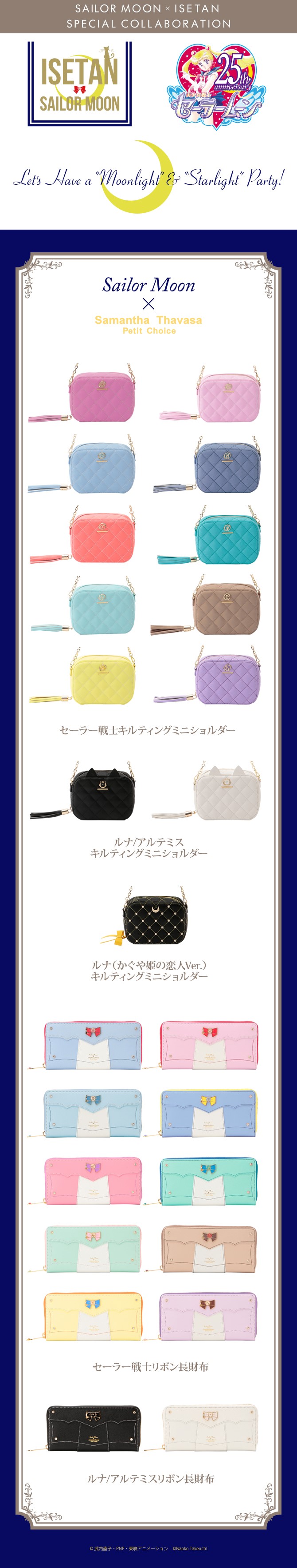 Seria skórzanych portfeli w kolorach czarnym i białym, z ozdobą inspirowaną diademem Nowej Królowej Serenity: - Neo Queen Serenity Charm tsuki nagazaifu – podłużny portfel z zawieszką i paskiem; może służyć również jako torebka;