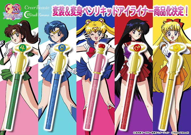 Pojawią się nowe płynne eyelinery w opakowaniach w kształcie długopisów do przemiany inner senshi. Dostępne kolory eyelinerów to: czarny, granatowy, bordowy, khaki i brązowy. Cena to 1728 jenów za sztukę (ok. 53 zł). W sprzedaży pojawią się w kwietniu.