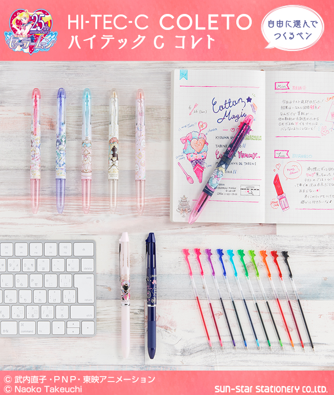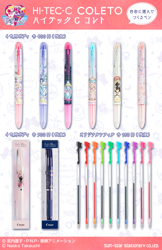 ołówkowy czy wymazywalny. Wzory z Sailor Moon mogą pomieścić 4 wkłady na raz. Do wyboru jest 6 wzorów w cenie 432 jenów (ok. 13 zł) za sztukę oraz 2 bardziej luksusowe wzory w cenie 972 jenów (ok. 30 zł) za sztukę. Przygotowano również