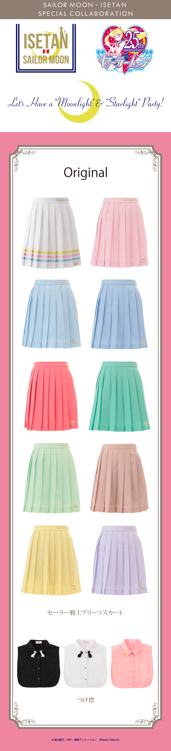 - Sailor Moon & Tuxedo Kamen Necklace - naszyjnik inspirowany Sailor Moon i Tuxedo Kamen; 48 600 jenów (ok. 1521 zł). - Moon Stick Necklace - naszyjnik z pałeczką Moon Stick; 18 360 jenów (ok. 575 zł). - Sailor Pluto &