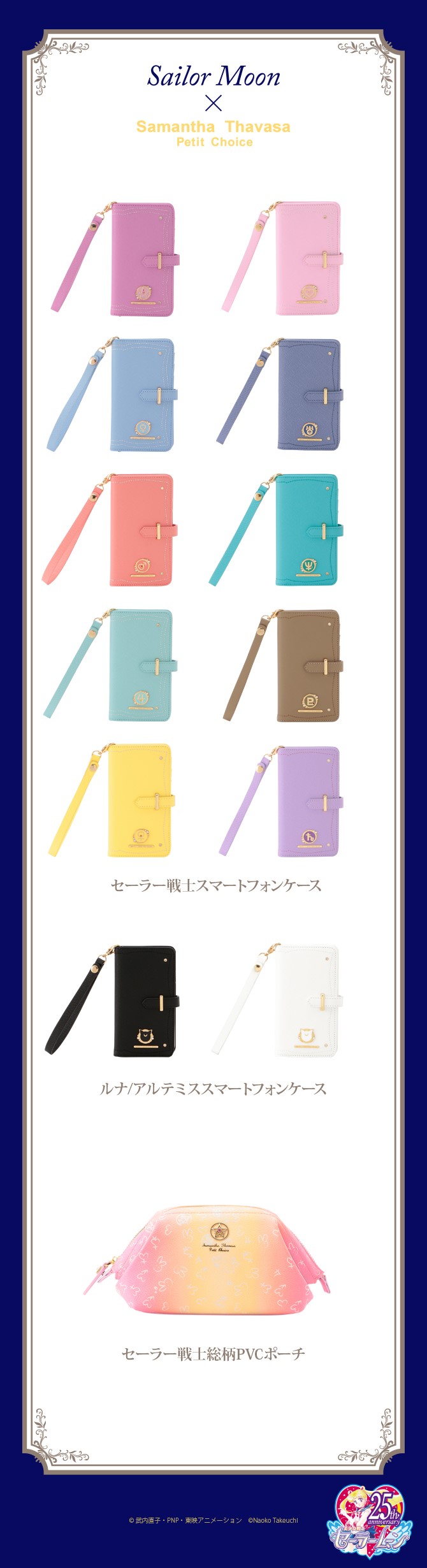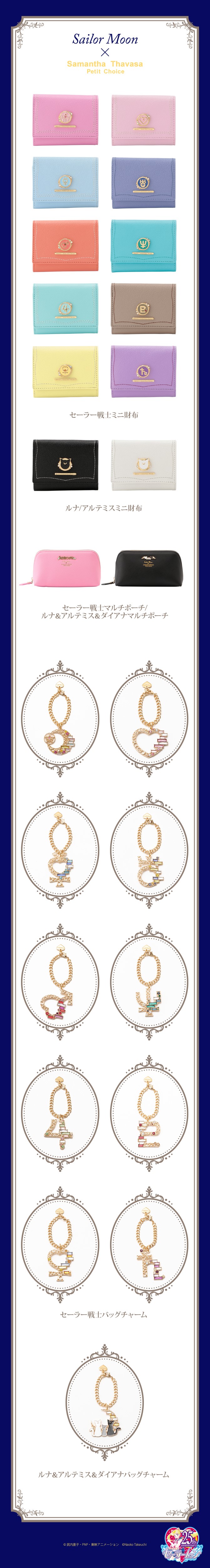 - Sailor Senshi Mini Saifu, Luna/Artemis Mini Saifu - małe portfele ze znakami planet, broszkami do przemiany lub głowami kotów; do wyboru wzory w kolorach 10 wojowniczek oraz w czarnym i białym;