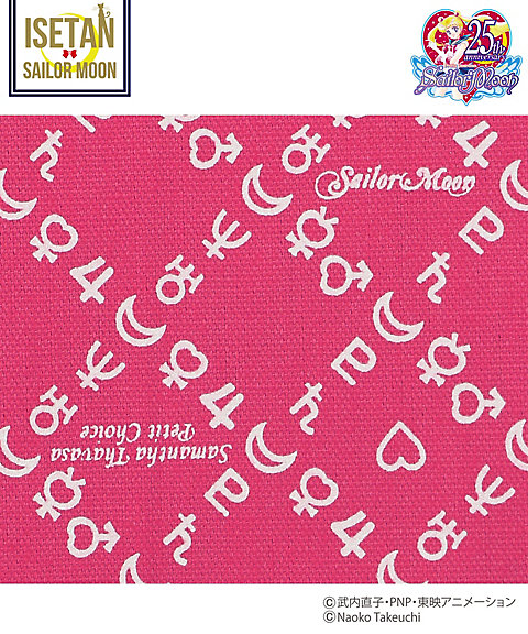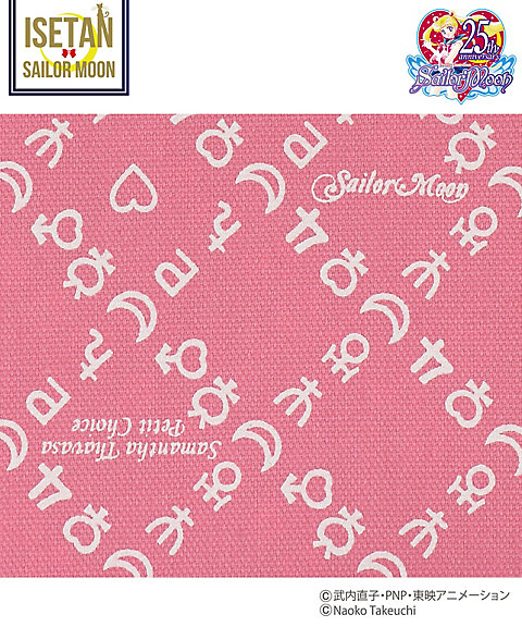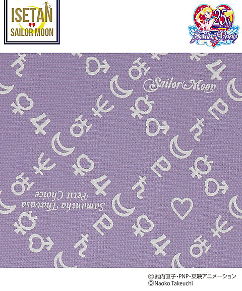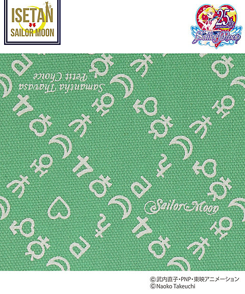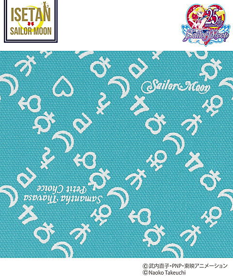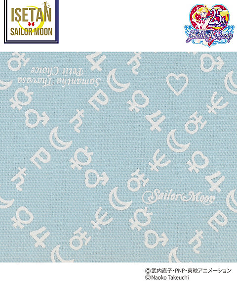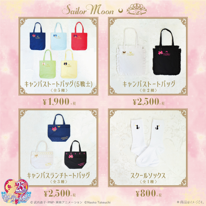 w magiczne przedmioty lub czarna z sylwetką Sailor Moon; 3600 jenów (ok. 112 zł). - skarpetki z kokardkami - do wyboru 5 kolorów inner senshi; 950 jenów za parę (ok. 30 zł). - torba materiałowa z nadrukiem w znaki planet -