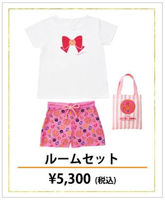 - Sailor Color Pile Jouge Set - dwuczęściowy komplet room wear; w zestawie koszulka i krótkie spodenki; do wyboru wersja Sailor Moon i Sailor Chibi Moon; 9720 jenów za zestaw (ok. 304 zł). - Sailor Color Pile Onepiece - podomka;