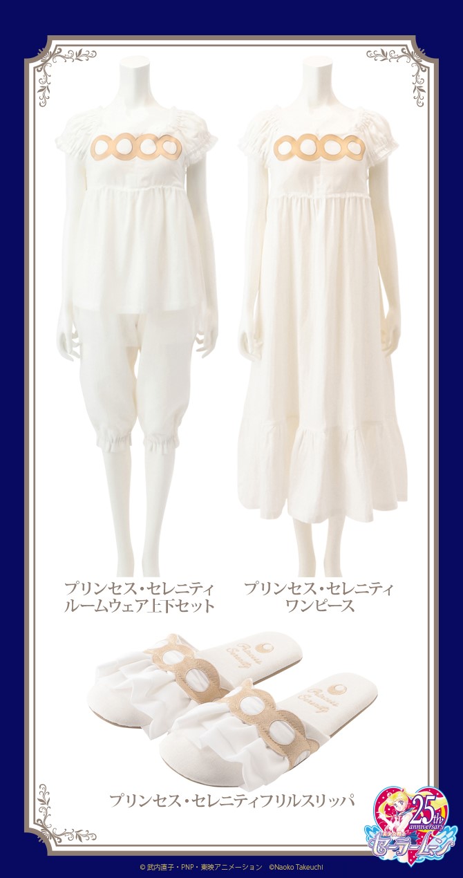 - Princess Serenity Room Wera jouge Set - biała piżama inspirowana suknią Księżniczki Serenity; 9720 jenów za komplet (ok. 311 zł). - Princess Serenity One Piece - sukienka Księżniczki Serenity; 8640 jenów (ok. 276 zł). - Princess
