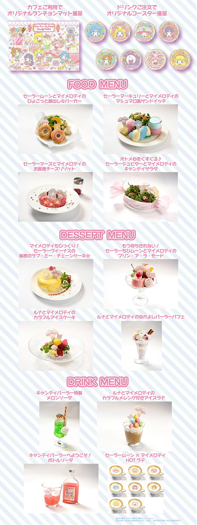 Od 6 kwietnia do 14 maja kawiarnie we współpracy z My Melody pojawią się w Sapporo Parco, od 6 kwietnia do 21 maja w Nagoya Parco, a od 20 kwietnia do 21 maja w Ikebukuro Parco. W Ikebukuro Parco dzień przed otwarciem lokal będzie mogło odwiedzić 50 wylosowanych