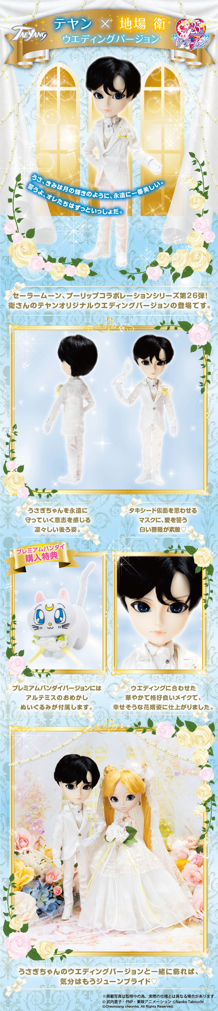 Dzisiaj rozpoczyna się przedsprzedaż na ostatnio zapowiedziane lalki, więc podano więcej szczegółów. W wersji limitowanej Usagi będzie mieć maskotkę Luny, a Mamoru Artemisa.