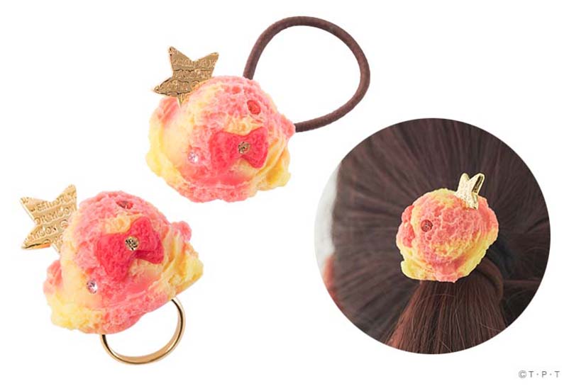 - Pretty Guardian Ice CreaMoon Ring / Hair Rubber Band - pierścionek i gumka do włosów z ozdobą w kształcie gałki lodów; 6480 jenów (ok. 210 zł) za sztukę.