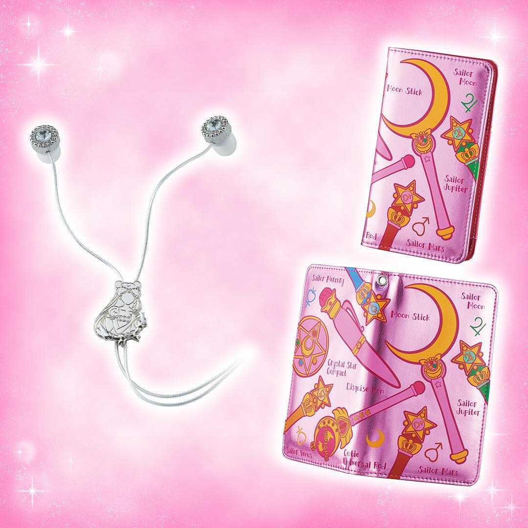 Change Rod, kokardą, Moon Stick i głową Luny; 650 jenów za sztukę (ok. 21 zł). - słuchawki douszne – łącznik z Księżniczką Serenity; 3400 jenów (ok. 109 zł). - etui na smartfona - 3600 jenów (ok. 116 zł). - kubek termiczny