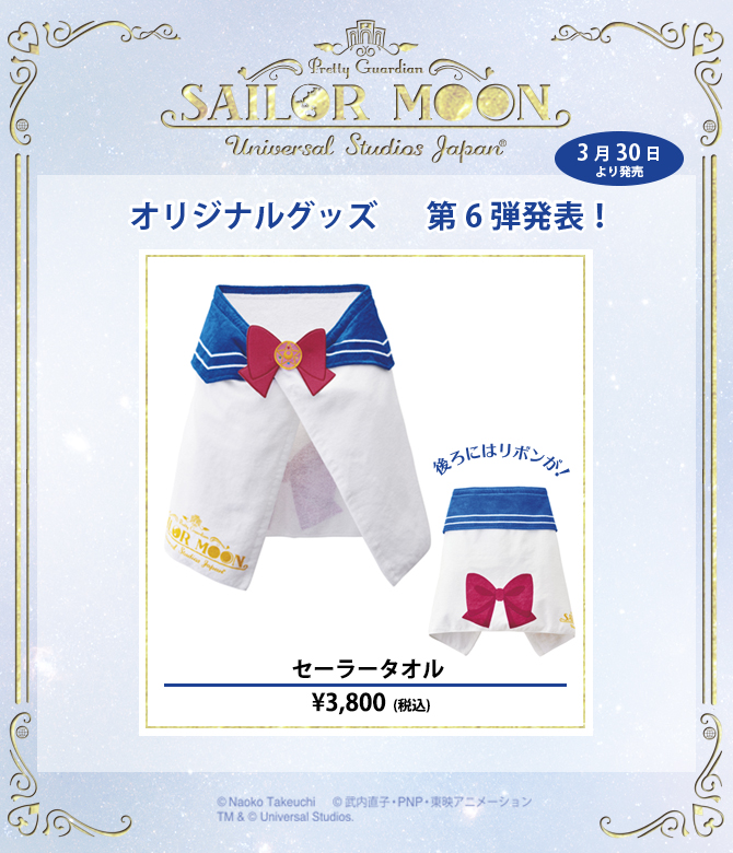 W szóstej odsłonie gadżetów parku rozrywki dodano ręcznik z kołnierzykiem i kokardami imitujący strój Sailor Moon. W sprzedaży pojawi się 30 marca i będzie kosztował 3800 jenów (ok. 121 zł).