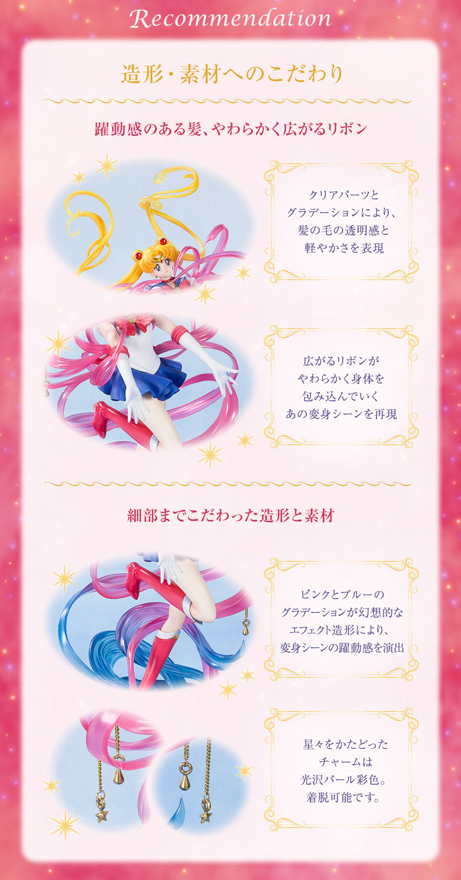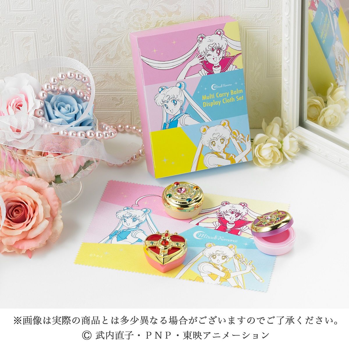 Balsamy ochronne w magicznych przedmiotach pojawią się również w zestawie. Na opakowaniu jest Sailor Moon z trzech różnych serii. W zestawie jest szmatka, która może służyć jako ozdoba, ale można ją również wykorzystać do czyszczenia na przykład ekranów.
