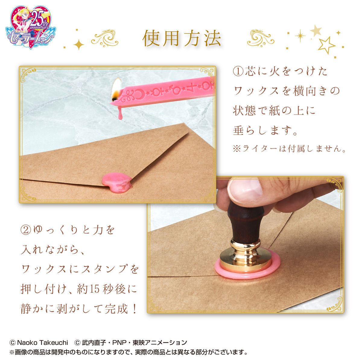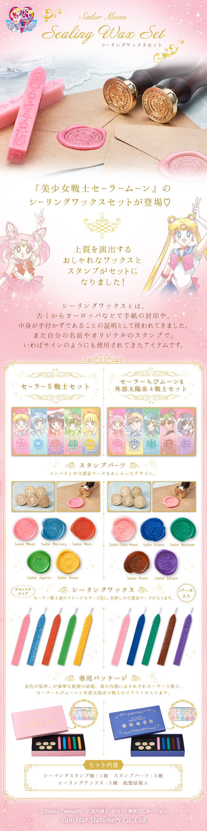 Zapowiedziano zestawy stempli z kolorowym woskiem w zestawie. Do wyboru jest zestaw inner senshi z metalowymi końcówkami odciskającymi w wosku znaki planet i broszkę Crystal Star oraz zestaw outer senshi z końcówkami odciskającymi znaki planet i broszkę