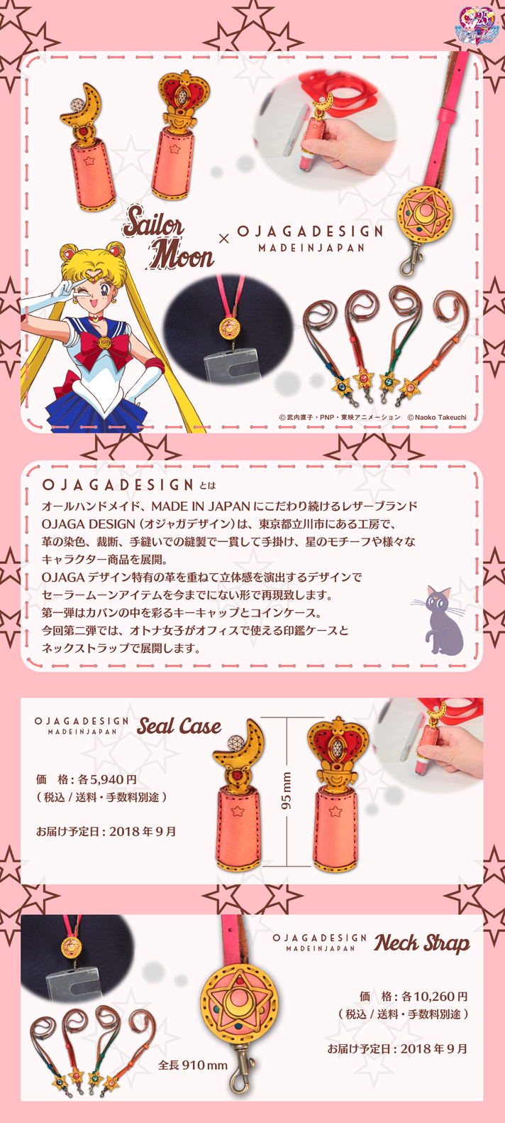 Pojawi się druga współpraca z Ojaga Design. W sprzedaży pojawią się skórzane etui na stempel imienny oraz smycze. W przypadku etui do wyboru jest wersja z Moon Stick lub Spiral Heart Moon Rod. Wymiary to 30 x 95 x 20 mm. Cena za sztukę to 5940 jenów (ok.