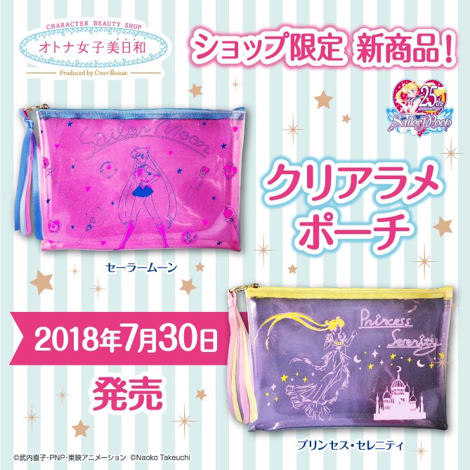Od 30 lipca w sprzedaży pojawią się przezroczyste kosmetyczki wyściełane w środku materiałem. Do wyboru wersja Sailor Moon lub Księżniczka Serenity. Cena za sztukę to 1404 jeny (ok. 48 zł).