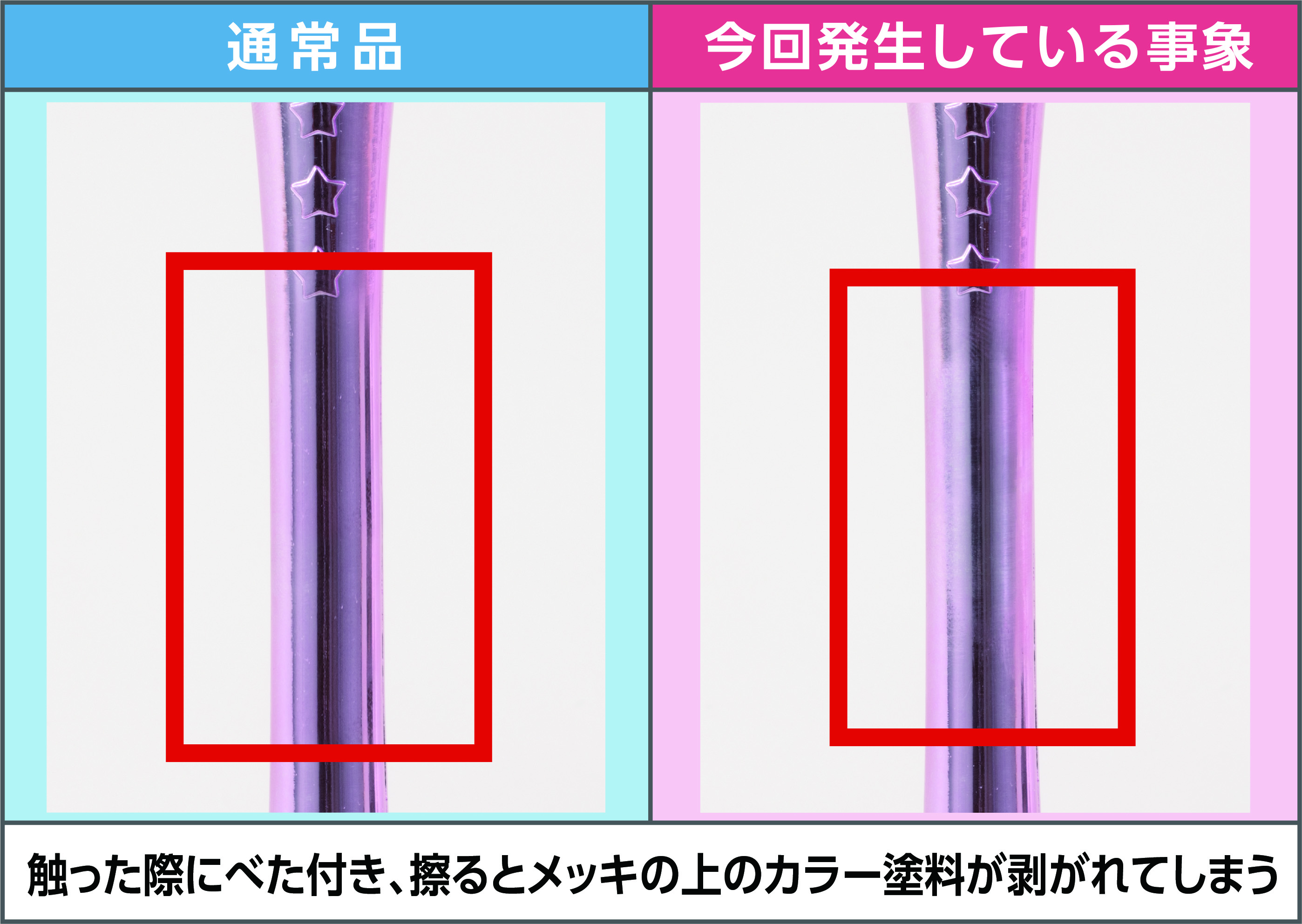 Wśród zestawów pałeczek i bereł dla fanklubowiczów pojawiły się wadliwe produkty, na niektórych elementach błyszcząca warstwa zaczęła się złuszczać. Proces wymiany wadliwych egzemplarzy jest w przygotowaniu.