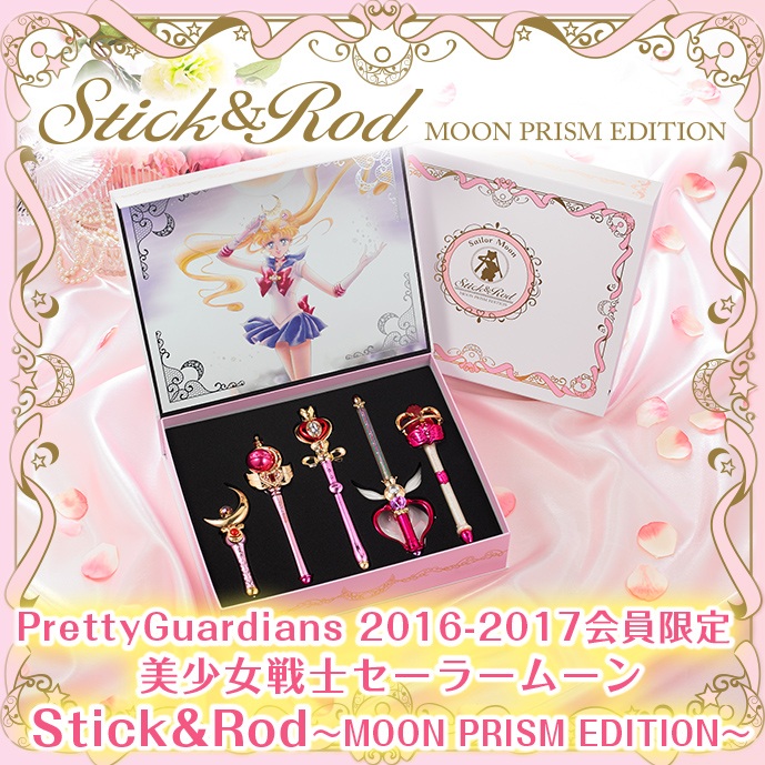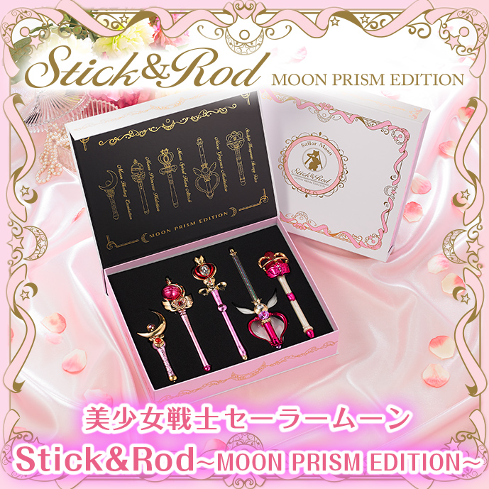 Wśród oryginalnych gadżetów sklepowych pojawi się przezroczysta torba z PVC w zestawie z satynowym workiem wkładanym do środka. Torba jest różowa ze sznurkowymi uchwytami, a worek do środka ma nadruk z berłem Cutie Moon Rod oraz fioletową wstążkę służącą