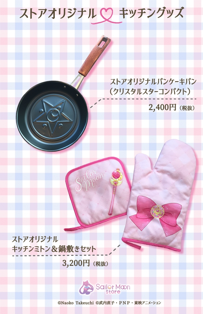 W Sailor Moon Store pojawią się patelnia z wzorem Crystal Star, rękawica kuchenna z kokardą i broszką Crystal Star oraz podkładka pod gorące naczynia z Cutie Moon Rod. Naleśniki z patelni będą miały wzór Crystal Star, a sama patelnia ma wymiary 16,5 x