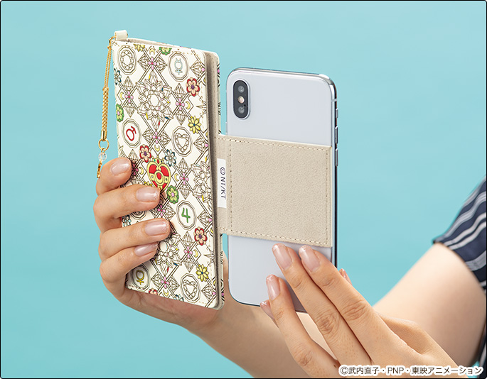 oraz broszkami do przemiany Sailor Moon i Sailor Chibi Moon. Dopięta zawieszka z półksiężycem i kryształkiem. Etui są uniwersalne i pasują również na iPhony 6/7/8/X. W sprzedaży są dostępne od 14 września w cenie 21385 jenów (ok. 704