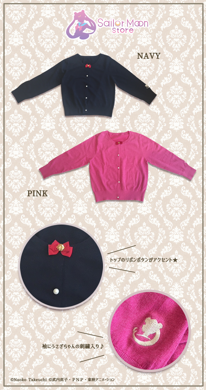 W Sailor Moon Store pojawią się sweterki z małą kokardką pod szyją. Swetry mają perełkowe guziki oraz wyszyty profil Sailor Moon na rękawie. Do wyboru kolor różowy lub granatowy. Dostępne w rozmiarach M i L. W sklepie pojawią się 20 października w cenie